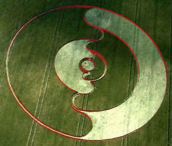 Leaving out all parts of these circles not part of the pattern, and making black all areas representing standing crop, finishes the reconstruction of the 2001 Causewayed Enclosure formation. |