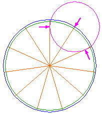 Copy circle 7 two times to the end-points of the extended rays 11. |