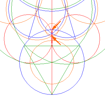 Construct a (small) circle centered at the upper intersection of circle 16 and the (extended) vertical centerline, passing through the lowest intersection of circles 9 and the same centerline. |