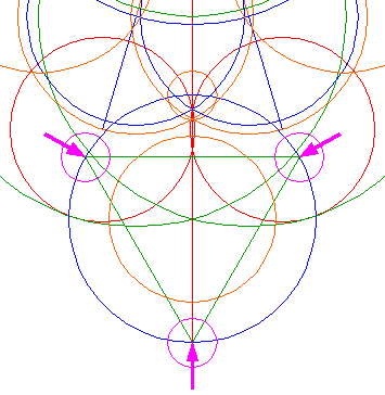 Copy circle 19 three times to the angular points of triangle 18. |