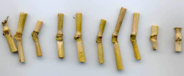 Janet Ossebaard & Robert Boerman, 2001. Furthermore I discovered a variety of growth anomalies. Various stems had been twisted and turned, just below the seed heads. Some also showed curled leafs: