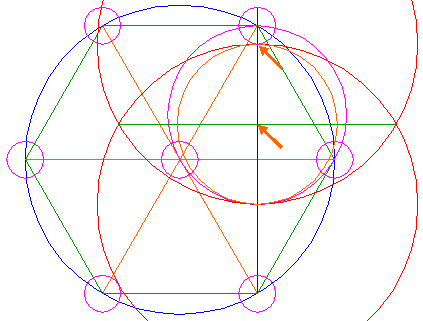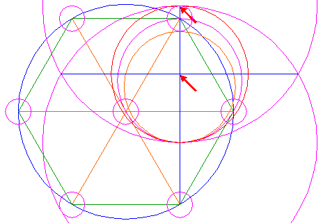 Construct a circle concentric with circle 1, passing through the centers of circles 5 and 6 (where both neighbours of each circle intersect). |