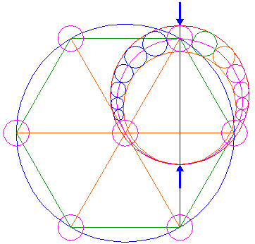 Construct the connecting lines of opposite centres of circles 5 and 6 (passing through the main center). |