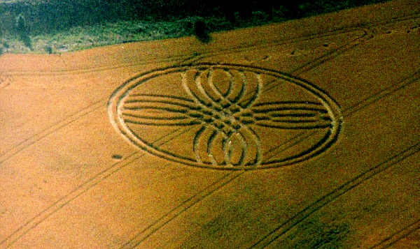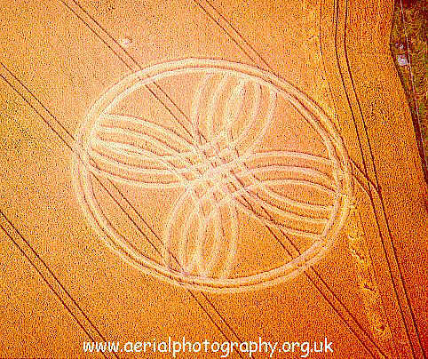 There is a large circle on the left of the M1, going north at kexbrough, just before the bridge with the brightly coloured graffiti. It is a circle with arcs radiating inwards from four outer points, crossing over and looking like some sort of Celtic design.