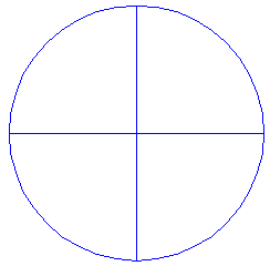 Draw a circle and with it, the horizontal and vertical centerlines. |