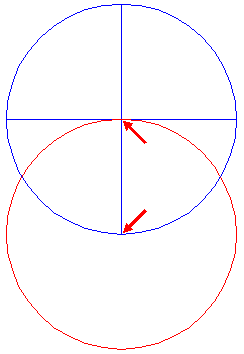 Elongate the vertical centerline until it intersects circle 2 at its lowest point. Copy circle 13 to this point. |