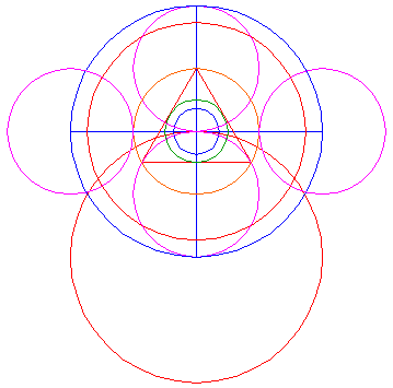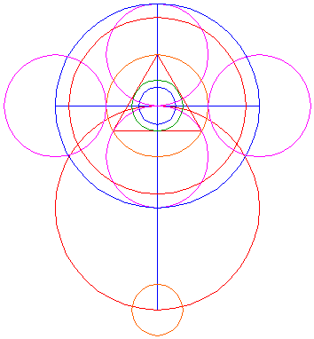 The vertical row of circles 4 and 5, again, form Vesica Pisces symbols. And again, an equilateral triangle can be constructed. Do so. |