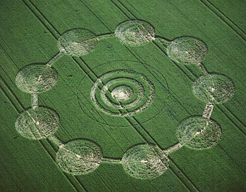 arrangement are nine circles, (approx) 30ft diameter each, which are connected
