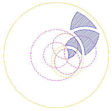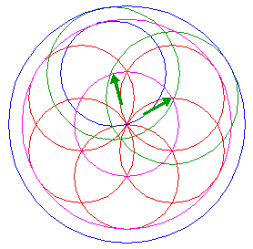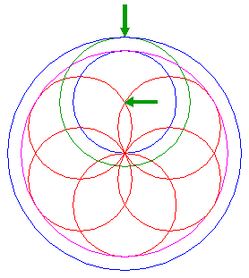 | 13. |   | Copy circle 8 two times, to the center of circle 11 (on ray nr. 7), and to the center of the upper right circle 7 (on ray nr. 2). |