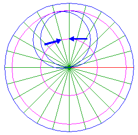 | 22. |   | Extend rays nrs. 0 and 6 until they intersect circles 15 (upper right) and 14, respectively. |