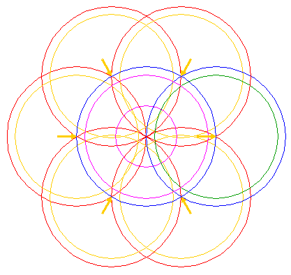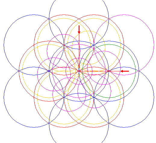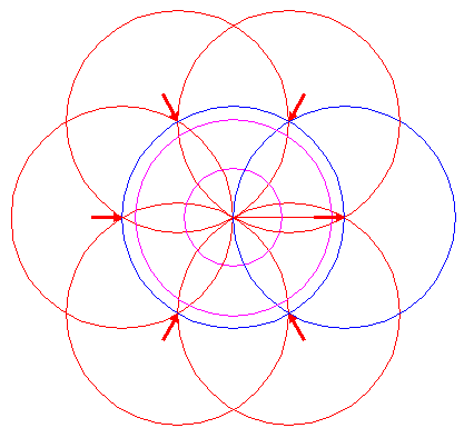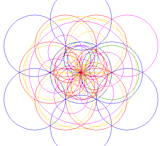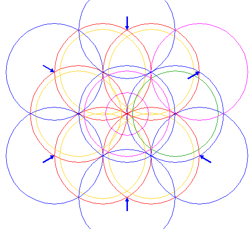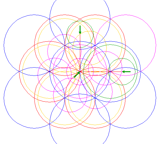| 12. |   | Copy circle 11 5 times (6 in total) and divide all six evenly around circle 1 (with centers on every fourth ray). |