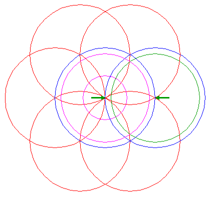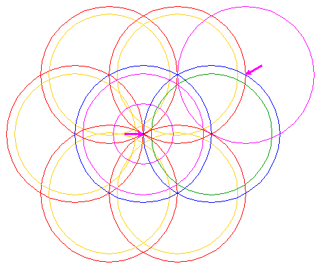 | 14. |   | Copy circle 8 another time to the upper right intersection of circles 13. |