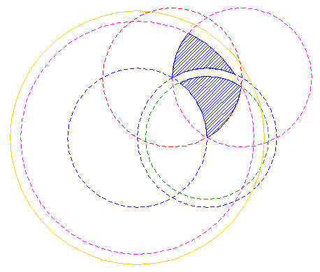 | 5. |   | Construct a circle concentric to circle 1, passing through the center of circle 4. |