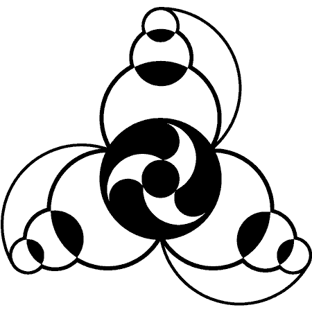 Description: Flattened circle surrounded by 3 spinning tear drops shapes & 3
