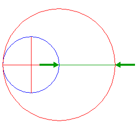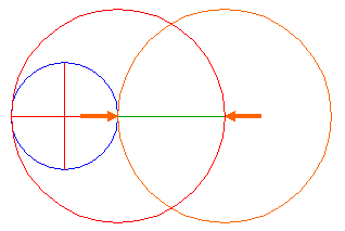 | 2. |   | Construct a circle centered at the right end-point of the horizontal centerline, with a radius equal to the diameter of circle 1. |
