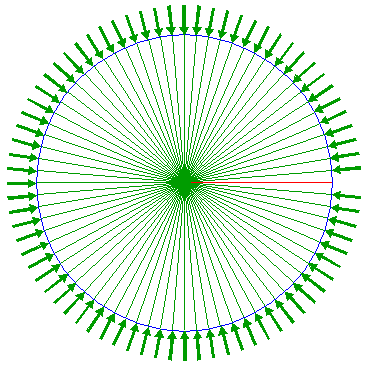 | 9. |   | As in step 3, copy lines 8 75 times and distribute, together with the original ones (76 pairs in total), evenly around the center of circle 1. |