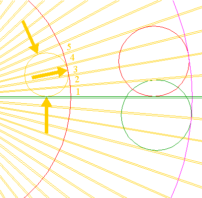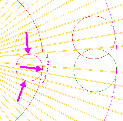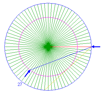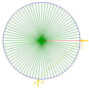| 4. |   | Counting rays 3 clockwise, starting from line 2, draw a line between the end-points of ray 0 (line 2) and ray 20, as shown. |