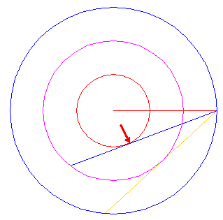 | 2. |   | Draw a line from the center of circle 1 to its rightmost point (the right half of the horizontal centerline). |