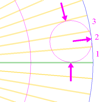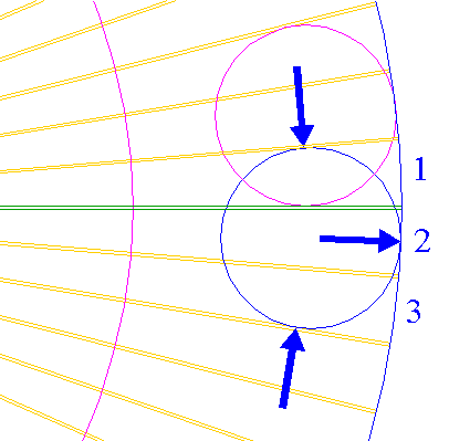 | 11. |   | Construct a circle, similar to circle 10, overlapping it up to the line 9 that is adjacent to upper line 8, see figure. |