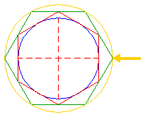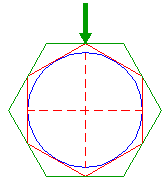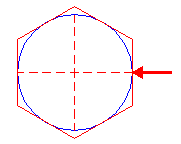 | Construct a circle centered at the right intersection of circle 1 and the horizontal centerline (1), tangent to hexagon 16, at the near side (2). | ||