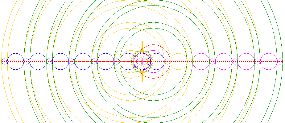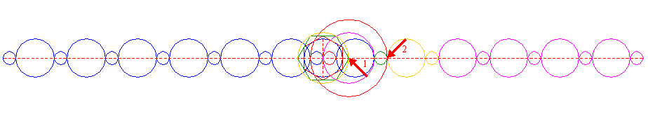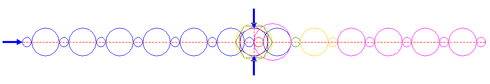 | Mirror all circles 6 (second copy), 8, 9 and 10, with respect to the vertical centerline (of circle 1) as a reference line. Extend the horizontal centerline up to the far end of the leftmost circle. | ||