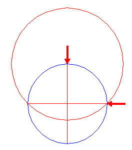 | 2. |   | Construct a circle centered at the upper endpoint of the vertical centerline, passing through the right (and left) endpoint of the horizontal centerline. |