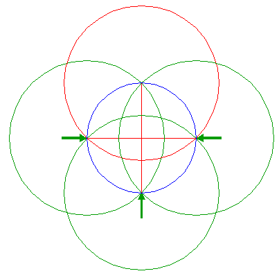 | 5. |   | Construct a circle with its centerline between both intersections of the two upper circles 4. Repeat this for the two lower circles 4. |