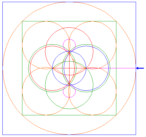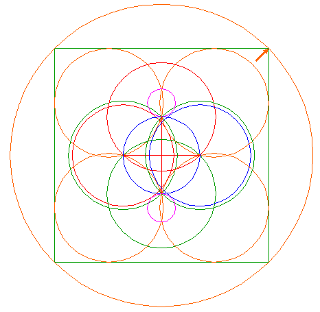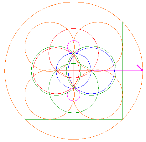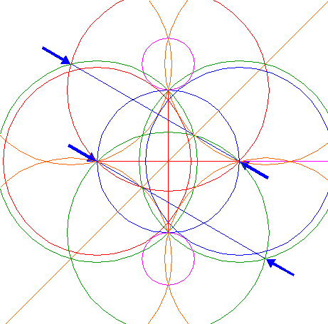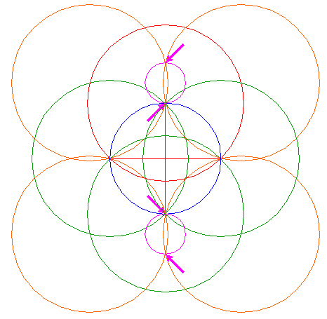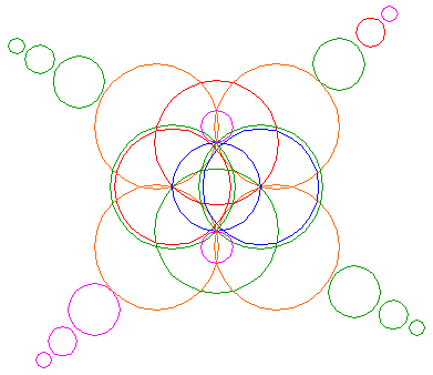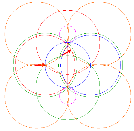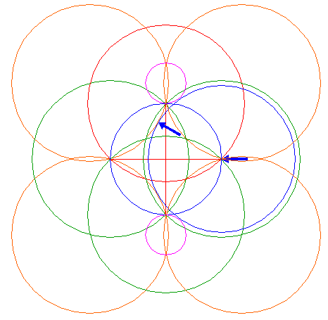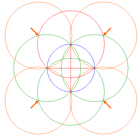 | 4. |   | Copy circle 2 four times to the outer mutual intersections of circles 2 and 3. |