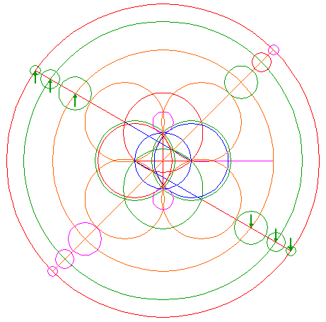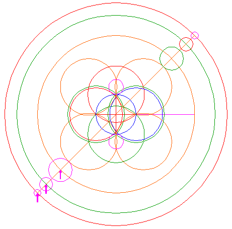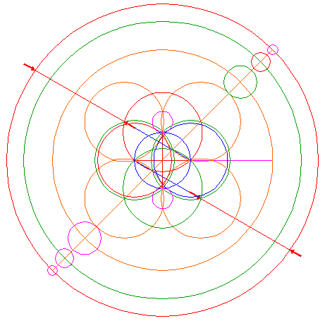 | 18. |   | Construct a circle concentric to circle 1, passing through the center of circle 17 (and 14). |