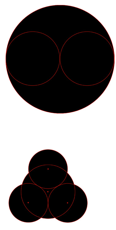 centrally placed circle of the clover-leaf fits exactly twice into the