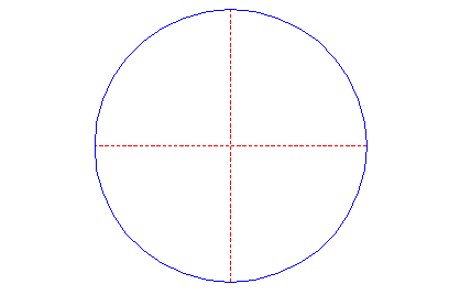 | Draw a circle. Draw the horizontal and vertical centerlines. |