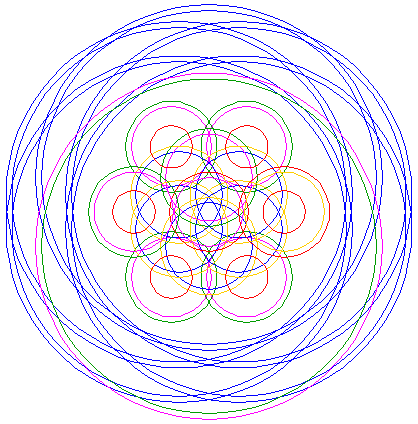 | Copy circle 16 six times, to the centers of circles 12 and 13. |