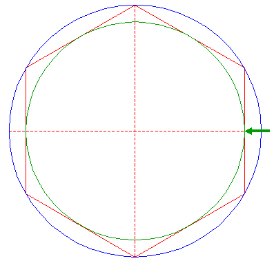 | Construct a circle, concentric to circle 5, and tangent to the upper left-hand and right-hand sides of hexagon 6. |