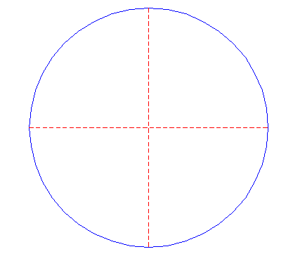 | Draw a circle. Draw the horizontal and vertical centerlines. |