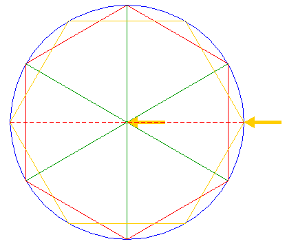 | Construct the inscribed hexagon of circle 1, pointing to the right. |