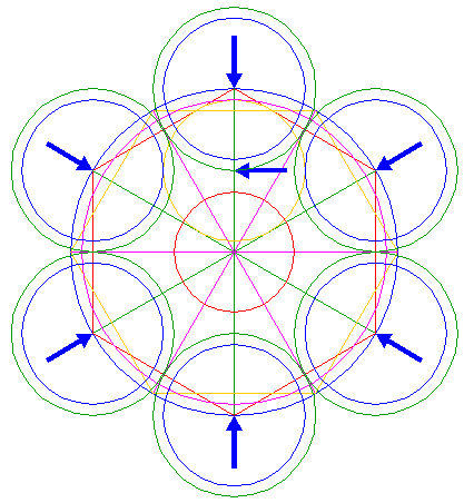 | Copy circle 13 six times, to the centers of circles 8. |