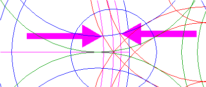 | Construct two circles concentric to circle 1, passing through the lower intersections of upper right circle 11 and the outer two circles 17 from the set of three at the right, just above the horizontal centerline, see detail. |