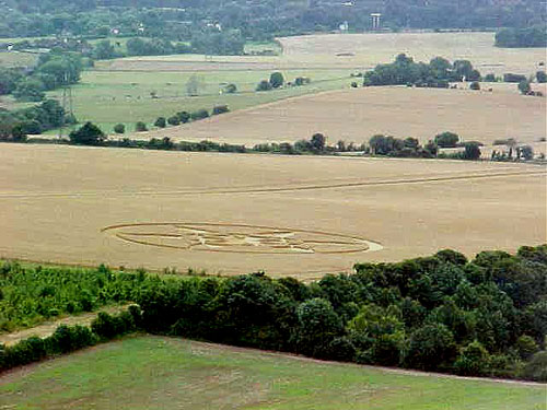 approx. 300 feet across in ripened wheat. It's placed just one field over