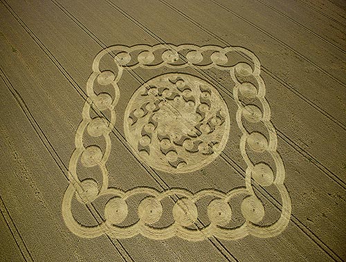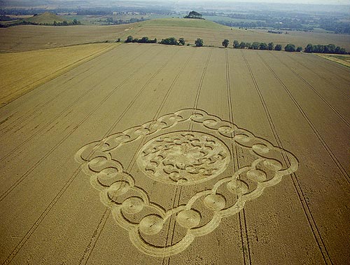 the crop circle in the South Field at the foot of Woodborough Hill near