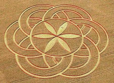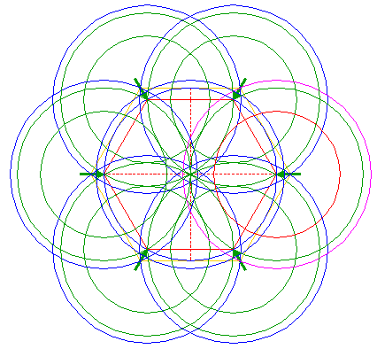 | Copy circle 1 six times, to the angular points of hexagon 2, creating a flower-of-life pattern. |