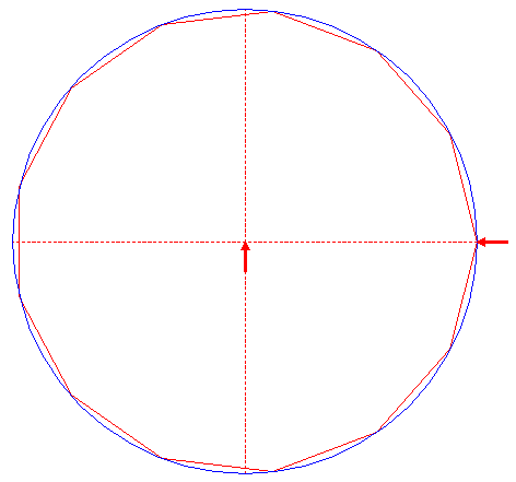 | 2. |   | Construct the inscribed regular 13-sided polygon of circle 1, pointing to the right. |