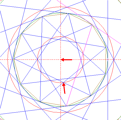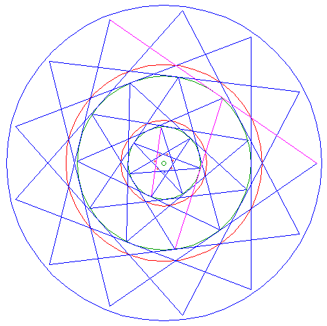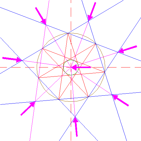 | 12. |   | Construct a circle concentric to circle 1, passing through the second ring of mutual intersections of lines 11 (and 10), counted from outside. |