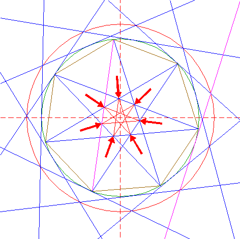 | 17. |   | Construct a seven-pointed star similar to lines 15 and 16, inscribed in the heptagon enclosed by lines 15 and 16, as shown. |
