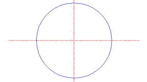 | Draw a circle. Draw and extend the horizontal and vertical centerlines. |