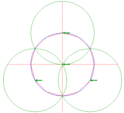 | Copy circle 1 three times, to every fourth angular point of dodecagon 2, starting at the top. |