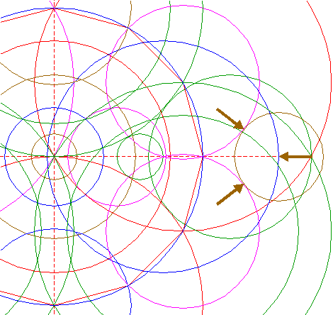 | Construct a circle centered at the righthand intersection of circle 17 and the horizontal centerline, tangent to circle 8 at the righthand side. |