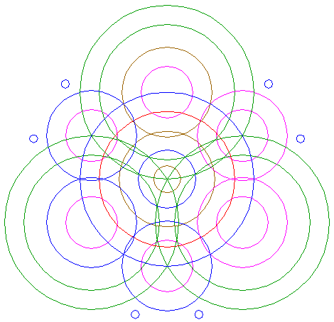 | Copy circle 16 three times, to the centers of circles 3. |