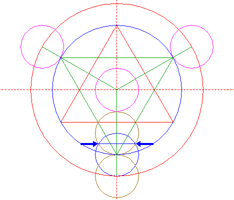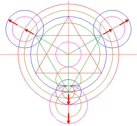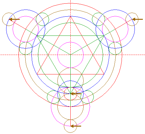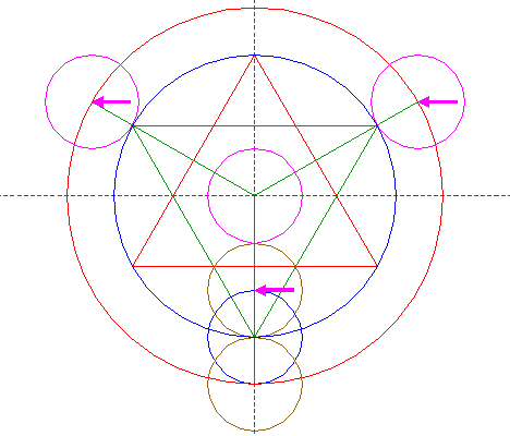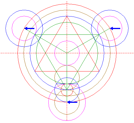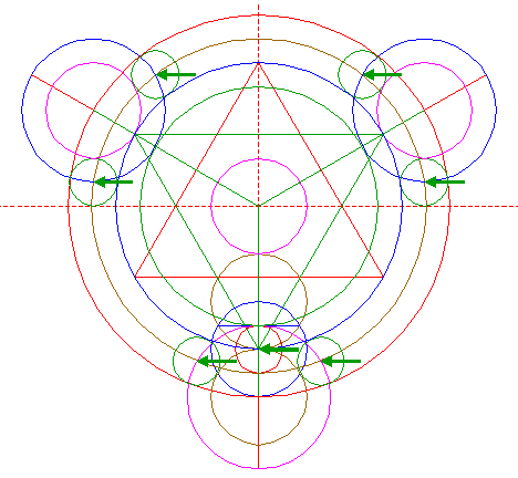 | Copy circle 12 three times, to the intersections of circles 15 and 16 with lines 17 (extended rays 8). |