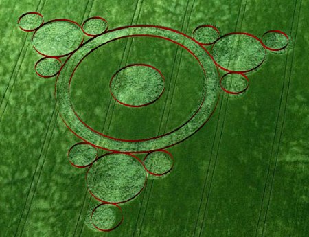 | Circles 1, 5, 9, 10, 13, 18 and 19 make up the constituent parts of the reconstruction. These circles are all fully visible in the formation itself. |