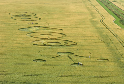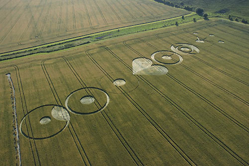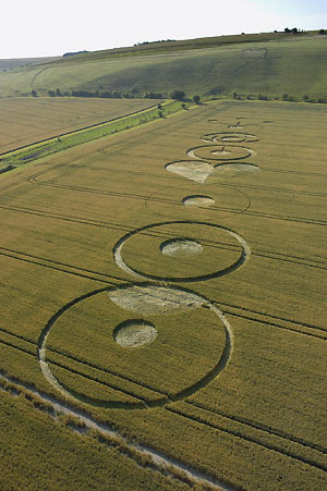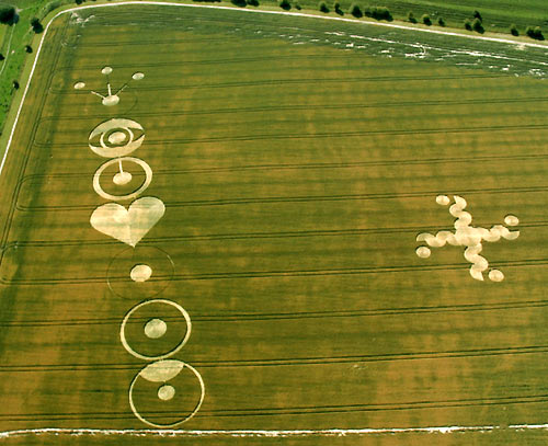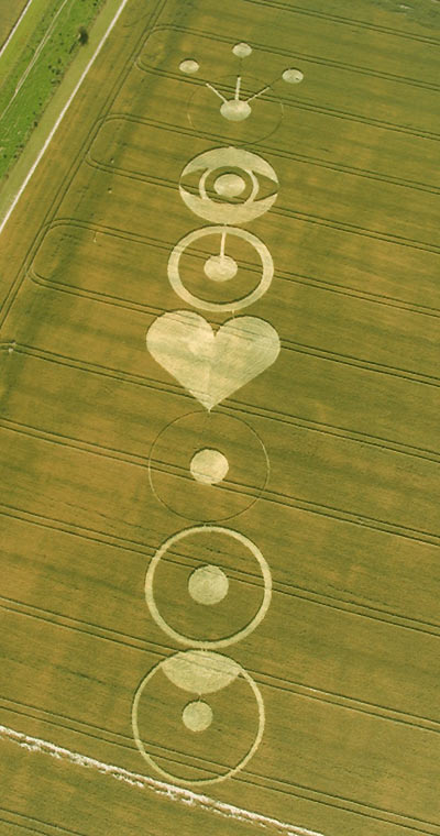 yards long 3 small circles, then 3 large circles with designs in, then a heart